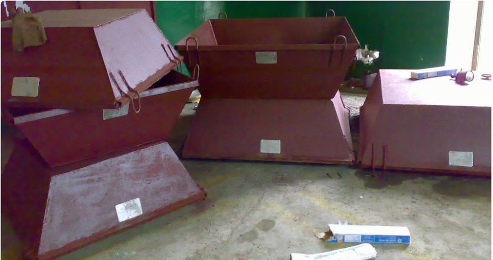 Ящик для бетона (тара для раствора) с четырьмя проушинами предназначен для хранения и транспортировки раствора с помощью крана. Ящик для раствора или ящик каменщика имеет форму усеченной пирамиды с вершиной, направленной вниз. Стенки и днище выполнены из листового металла. Прочность ящика для раствора рассчитана для транспортировки его краном. Низкая цена и высокое качество делают ящики для раствора и бетона лидерами продаж.